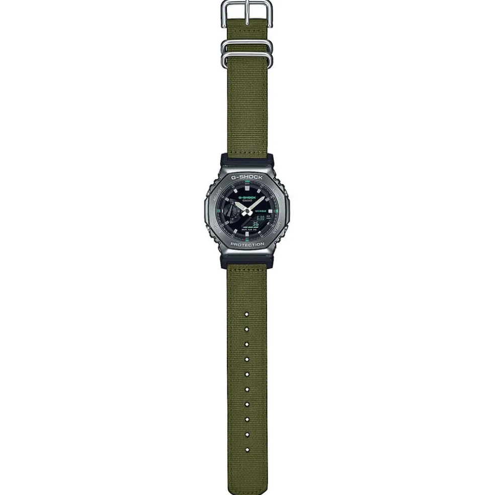 Montre Casio G-shock Classic Résine Argenté Ronde Quartz 49.3mm Fond Noir Bracelet Résine Vert 2atm Gm-2100cb-3aer