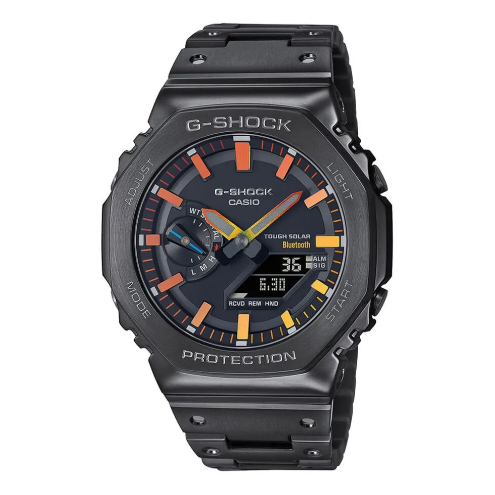 Montre Casio G-shock Classic Acier Noir Ronde Anadigitale 44.4mm Fond Noir Lunette Noir Bracelet Acier Noir Gm-b2100bpc-1aer