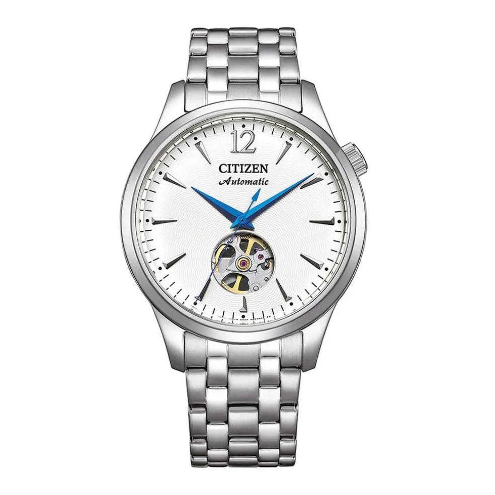 Montre Citizen Platform Acier Argenté Ronde 40mm Automatique Fond Blanc C艙ur Ouvert Bracelet Acier Argenté Nh9131-73a
