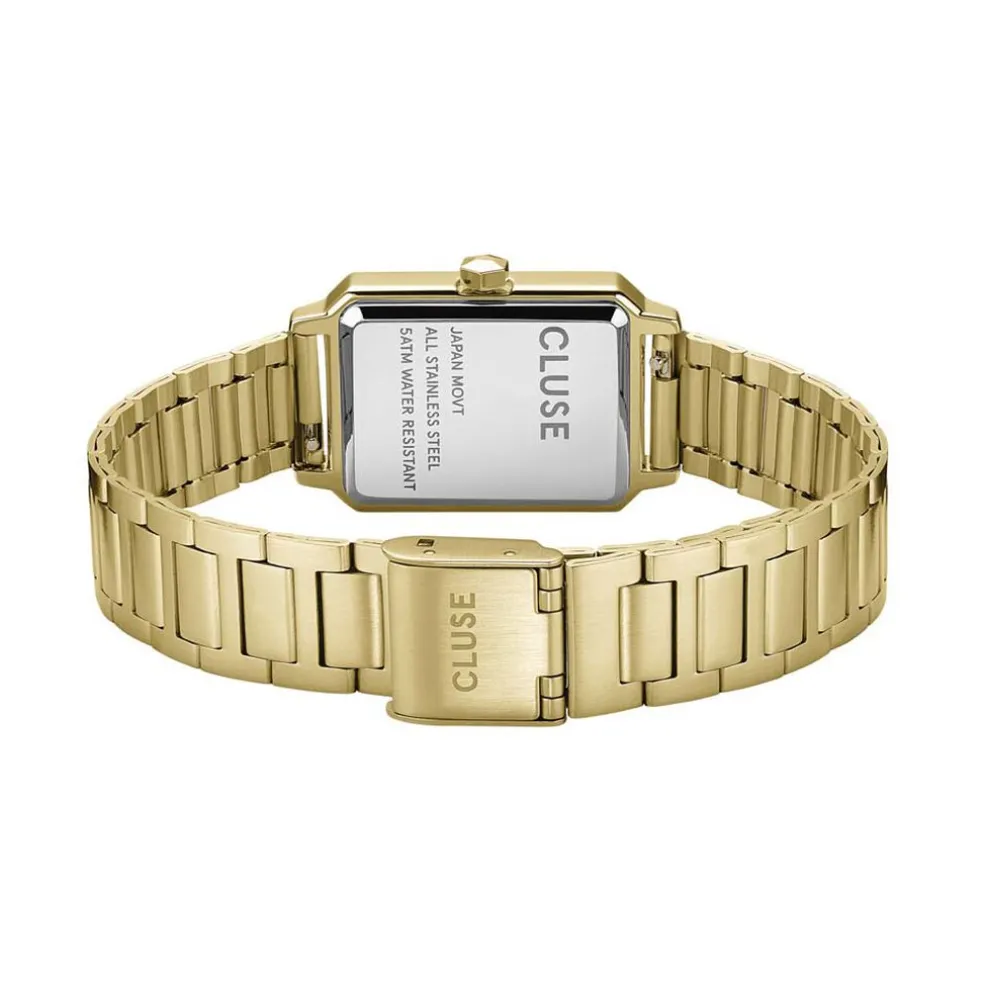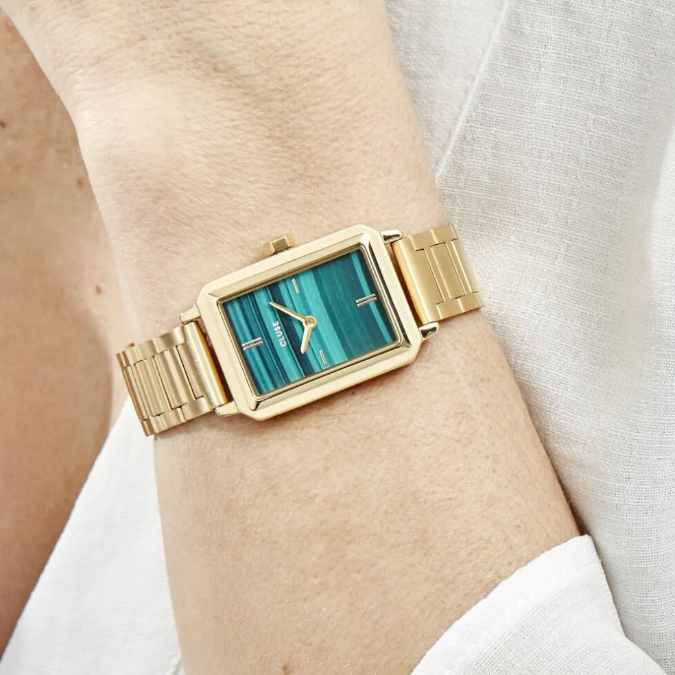 Montre Cluse Fluette Acier Doré Rectangulaire Quartz 30.6mm Fond Vert Bracelet Acier Doré Cw11502