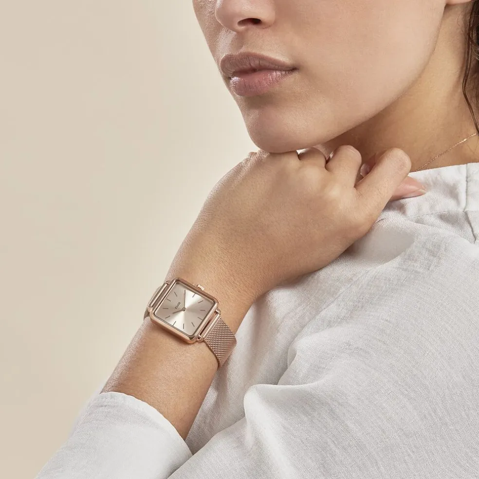 Montre Cluse La Tetragone Acier Dore Carree Quartz 28.5mm Fond Rose Bracelet Acier Rose Cw0101207009