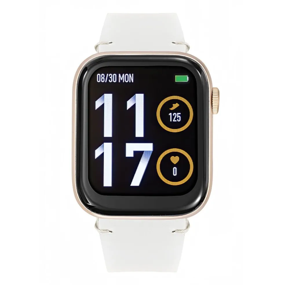 Montre Tekday Alliage Rose Rectangulaire 38 mm Connectée Fond Noir Bracelet Cuire De Vache Blanc 656546