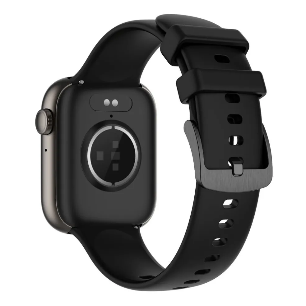 Montre Tekday Alliage Gris Rectangulaire 45mm Connectee Fond Noir Bracelet Silicone Noir 656500