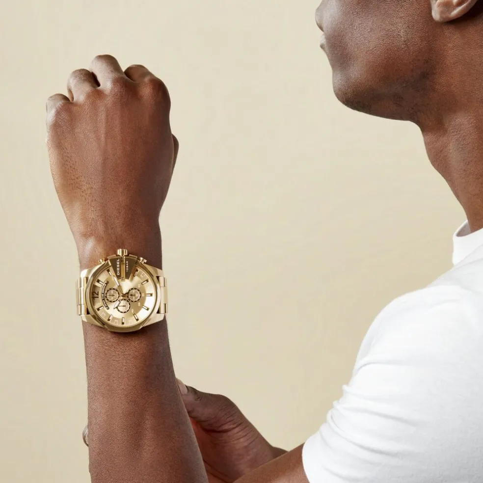 Montre Diesel Mega Chief Acier Dore Ronde Quartz Chronographe 51mm Fond Dore Bracelet Acier Dore Dz4360