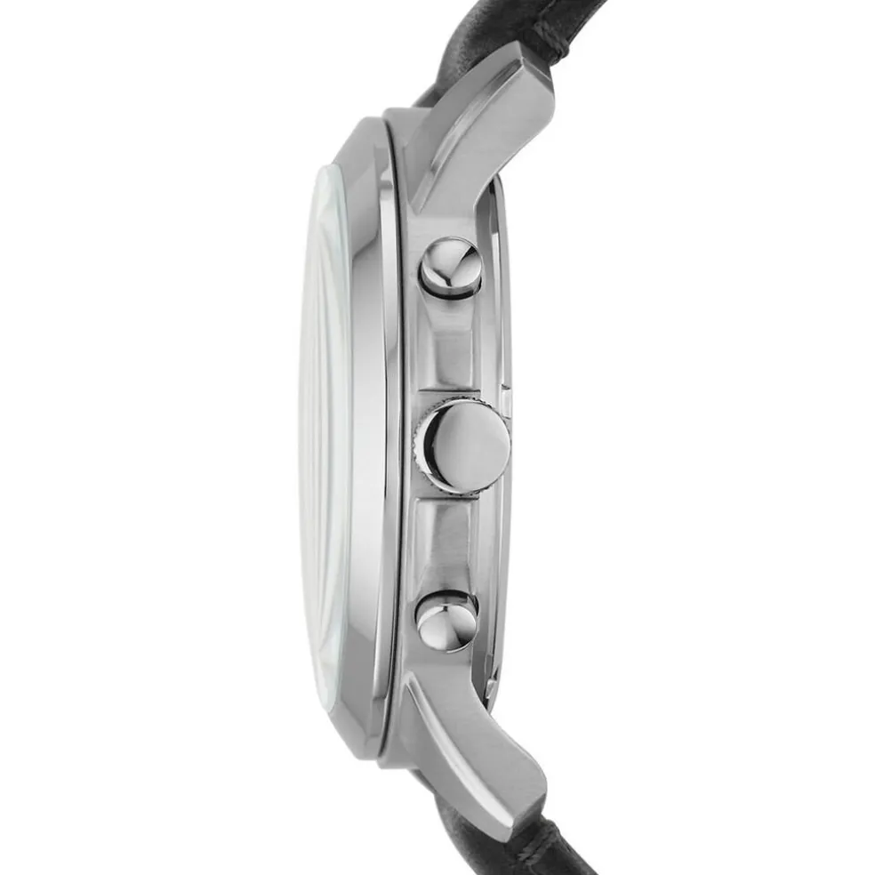 Montre Fossil Grant Acier Blanc Ronde Quartz Chronographe 44mm Fond Noir Bracelet Cuir Noir Fs4812