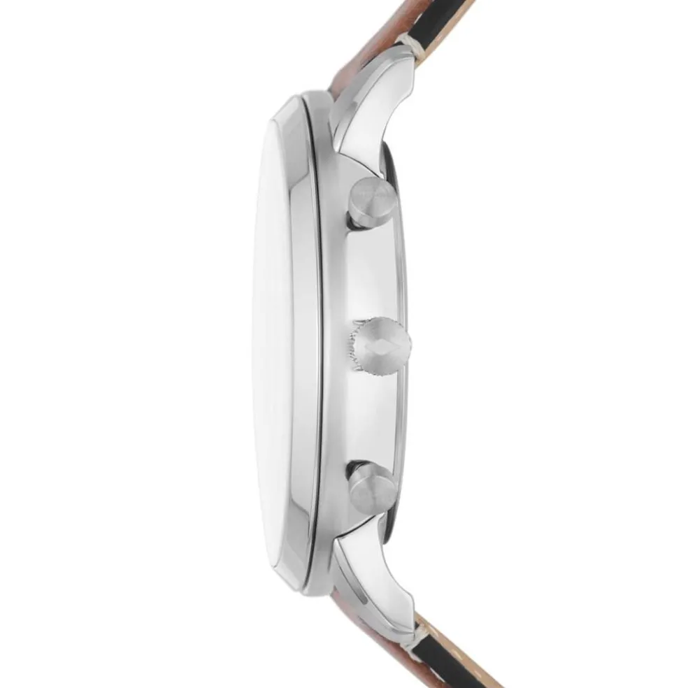 Montre Fossil Neutra Acier Argenté Ronde Quartz Chono 44mm Fond Vert Bracelet Cuir Marron Fs5963