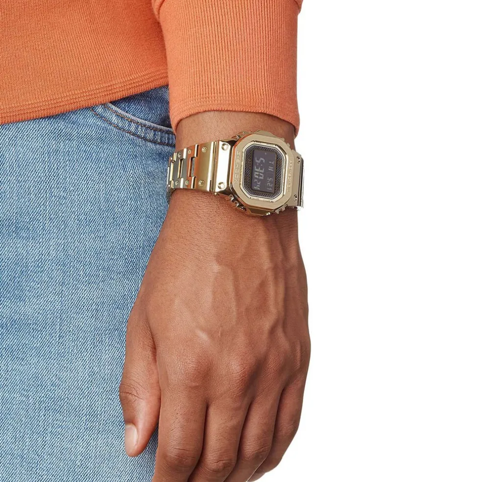Montre G-shock Premium The Origin Acier Doré Ronde Quartz 43.2mm Fond Noir Bracelet Acier Doré Gmw-b5000gd-9er