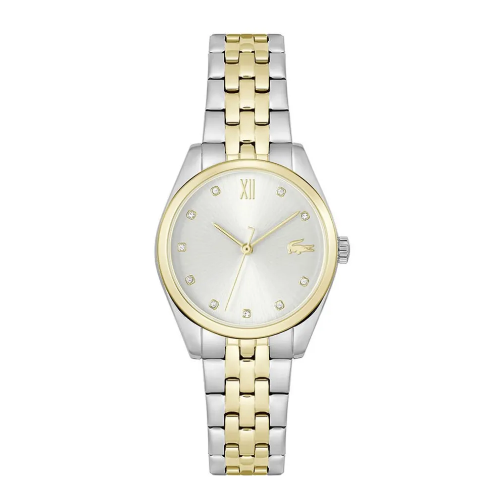 Montre Lacoste Tuilerie Acier Doré Ronde Quartz 30mm Fond Argenté Bracelet Acier Bicolore 2001302