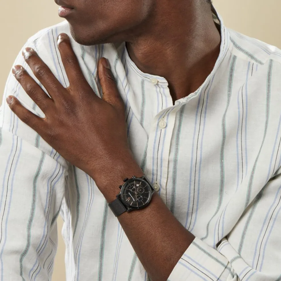 Montre Maserati Epoca Pvd Noir Ronde Quartz Chronographe 42mm Fond Noir Bracelet Milanais Métal Noir R8873618013