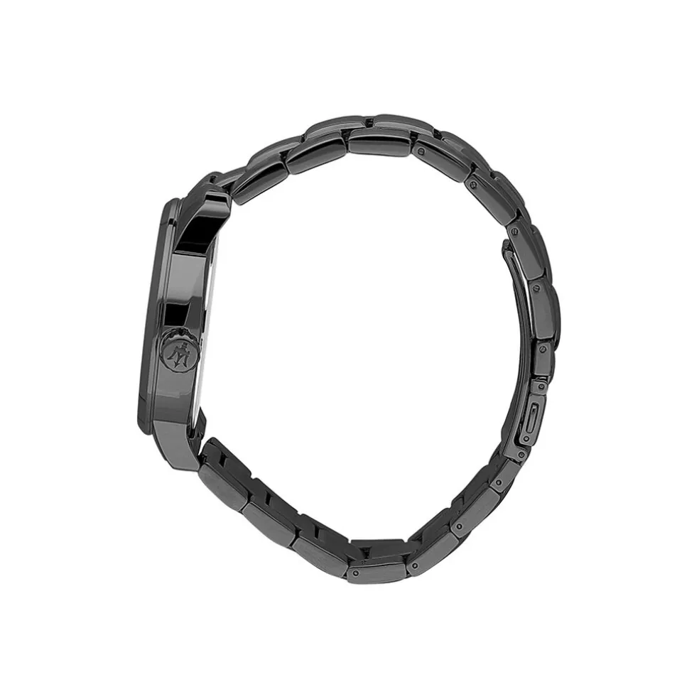 Montre Maserati Successo Auto Acier Argenté Ronde Quartz Chronographe 44mm Fond Bleu Bracelet Métal Argenté R8873621002