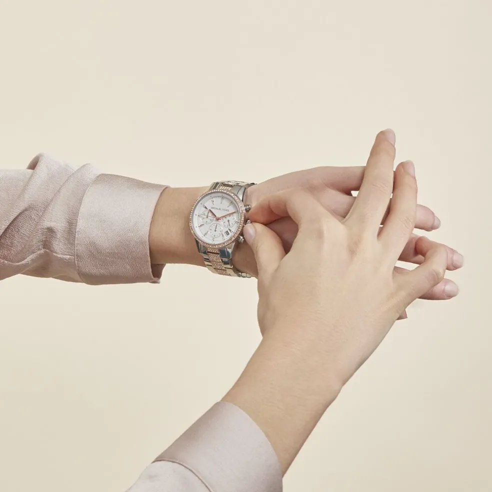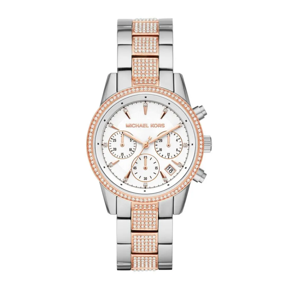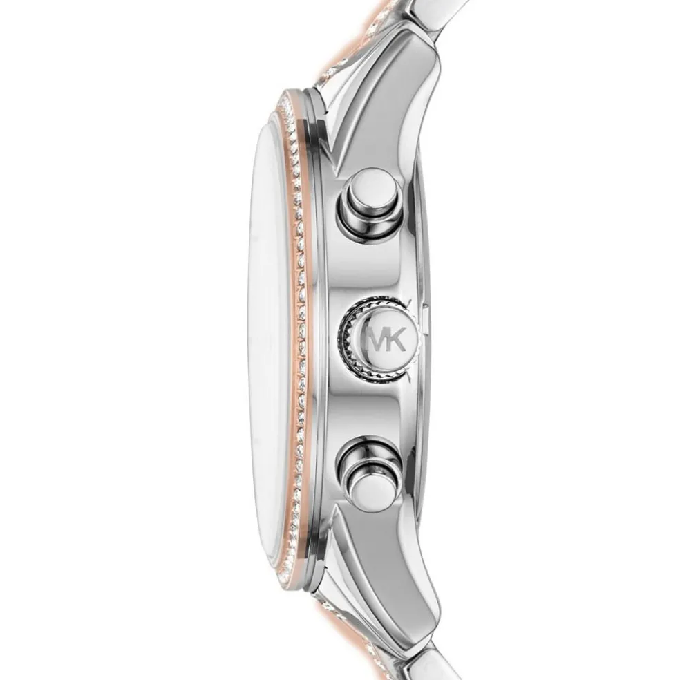 Montre Michael Kors BRYANT Acier Argenté Ronde Quartz Chronographe 37mm Fond Argenté Lunette Strass Bracelet Acier Bicolore Mk6651