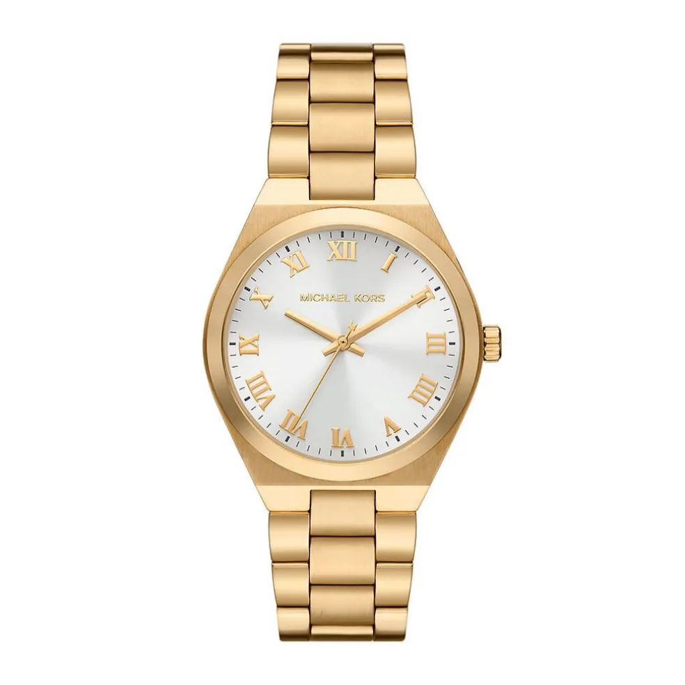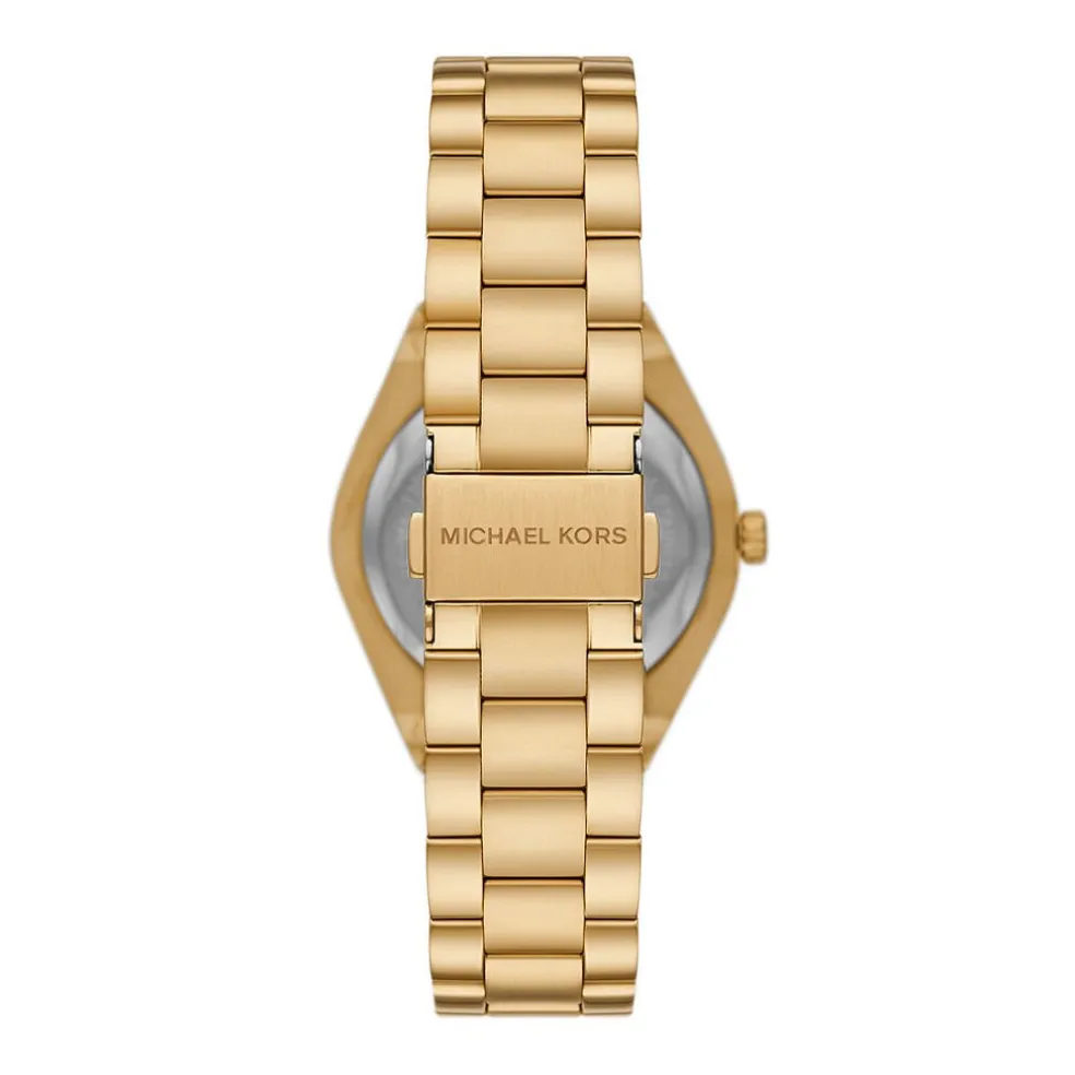 Montre Michael Kors Lennox Acier Dore Rond Quartz 37mm Fond Blanc Bracelet Acier Dore Mk7391