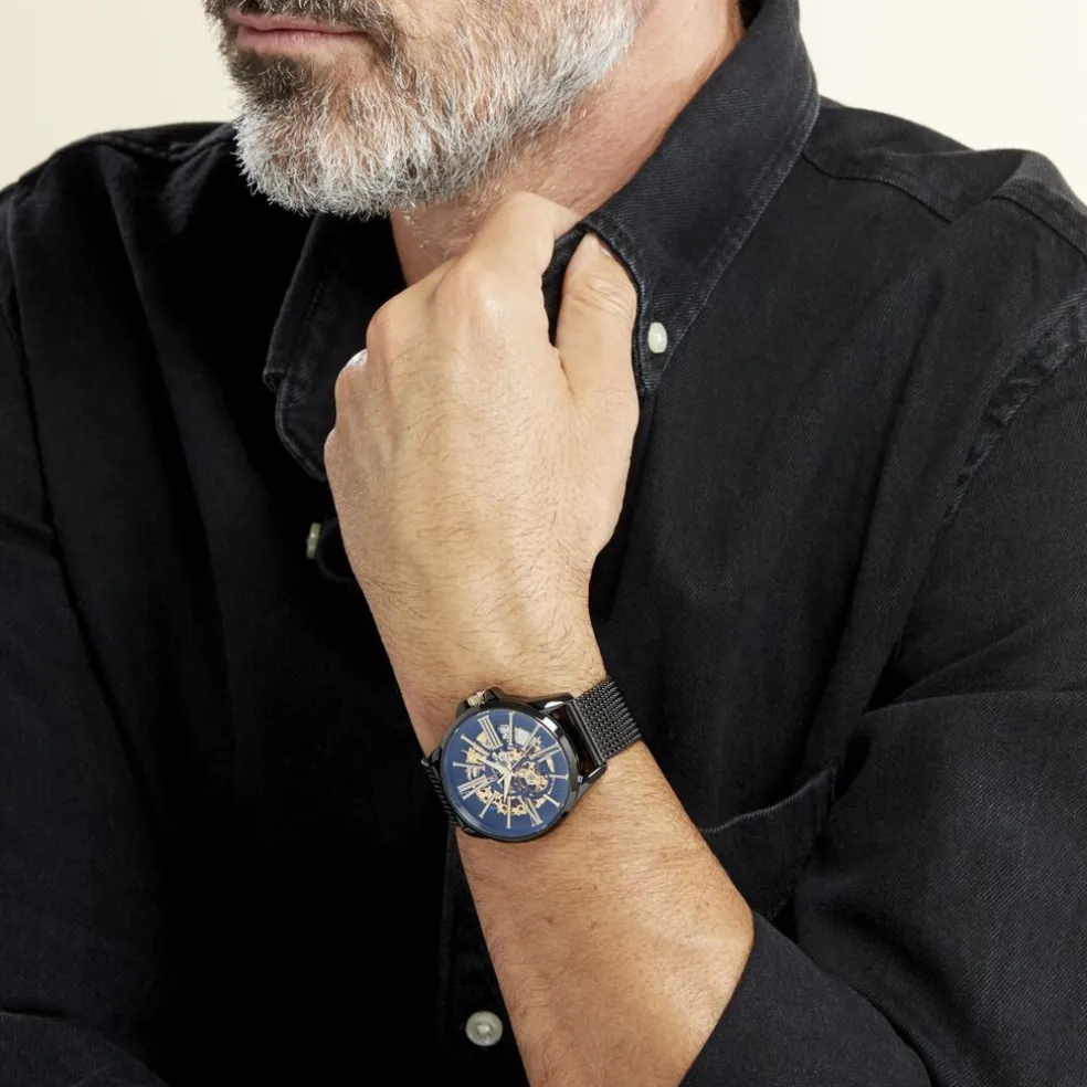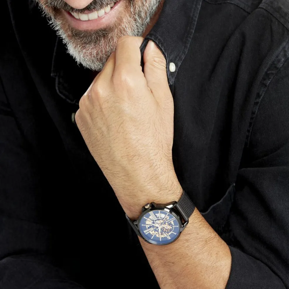 Montre Montignac Round Automatique Acier Noir Ronde Automatique 42mm Fond Noir Bracelet Acier Milanais Noir Mow405