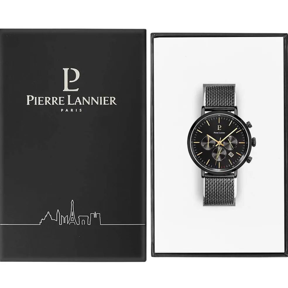 Montre Pierre Lannier Baron Acier Noir Ronde Quartz Multifonction 43mm Fond Noir Bracelet Acier Noir Maille Milanaise 222g439