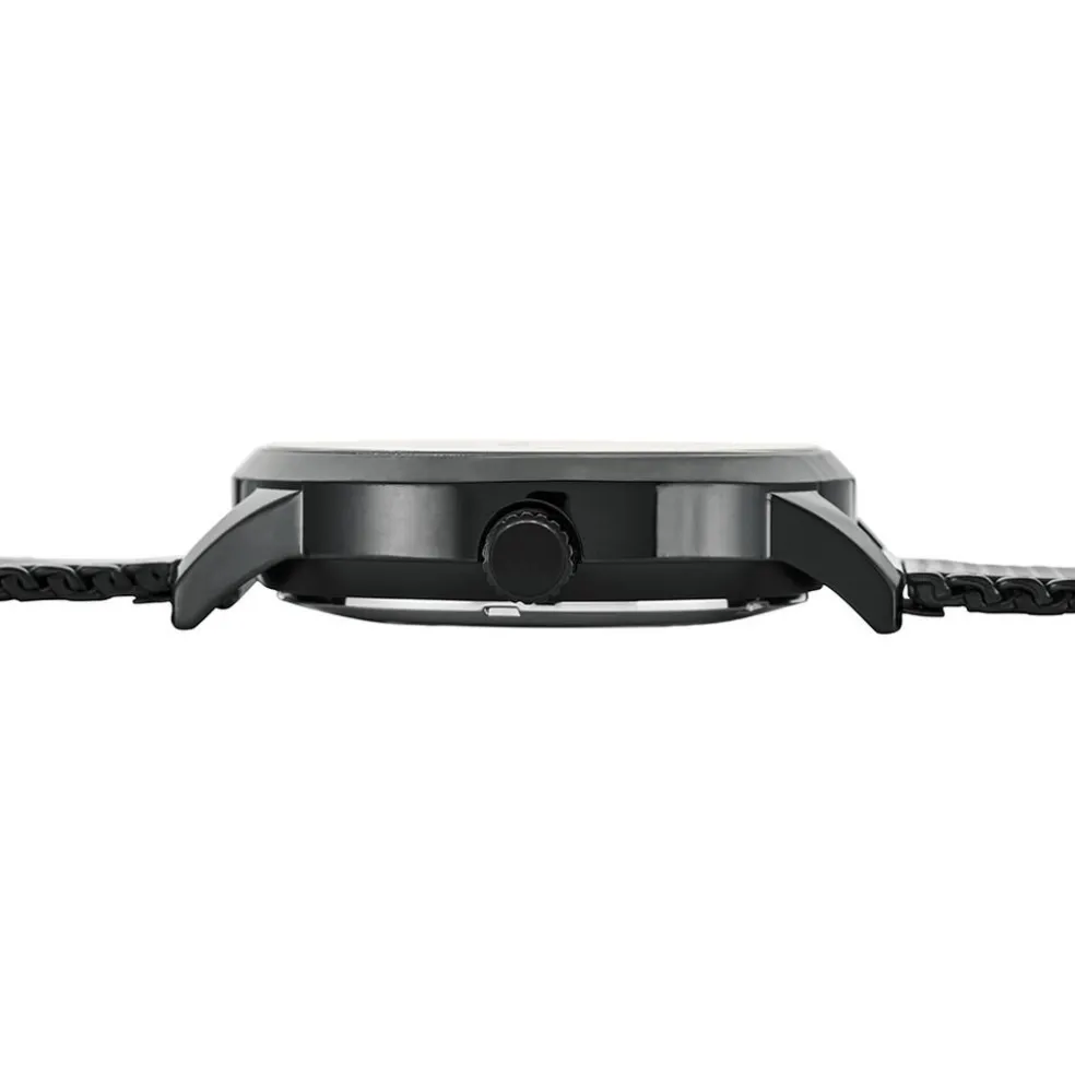 Montre Pierre Lannier Paddock Acier Noir Rond Automatique 43mm Fond Noir Bracelet Acier Milanais Noir 338a449