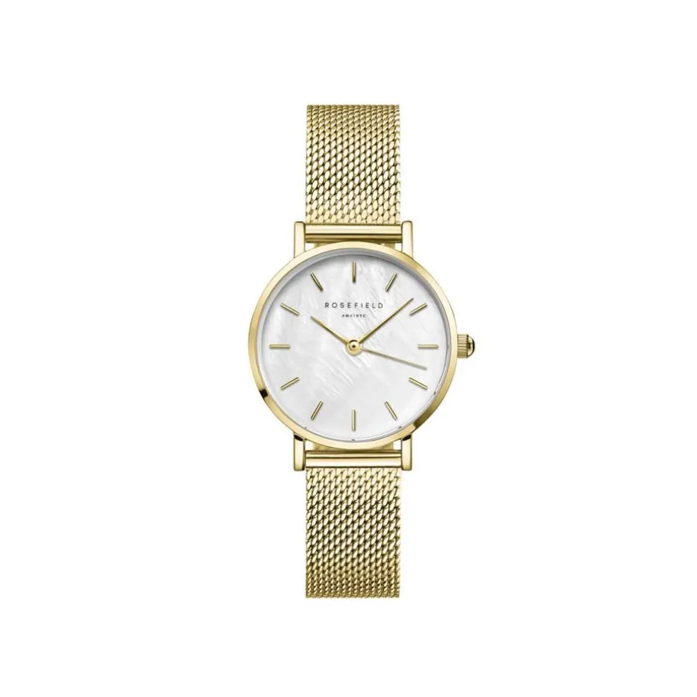 Montre Rosefield Small Edit Acier Doré Ronde Quartz 26mm Fond Blanc Bracelet Acier Doré Smgmg-s06