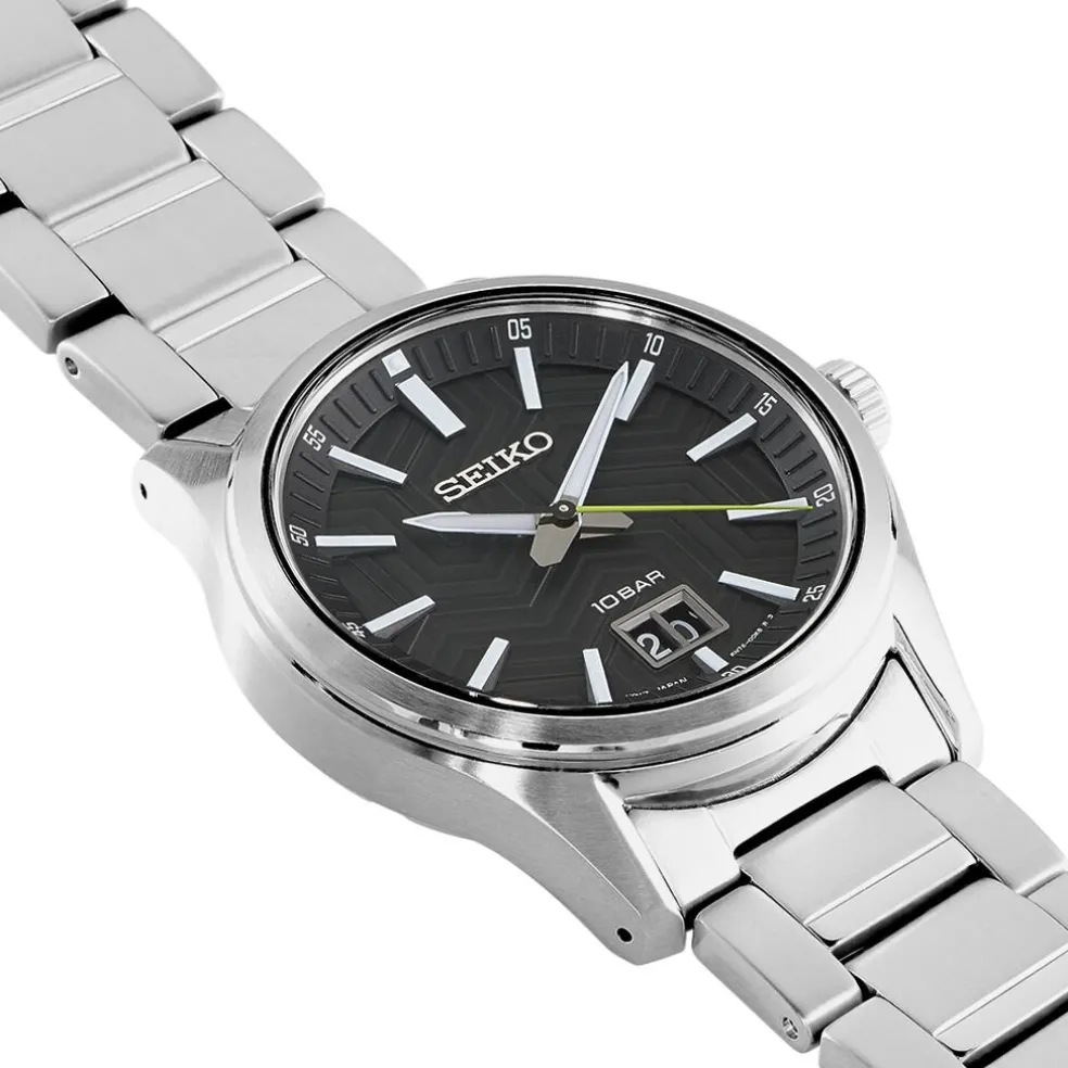 Montre Seiko Classique Acier Argenté Ronde Quartz 39.5mm Fond Noir Bracelet Acier Argenté 10atm Sur535p1