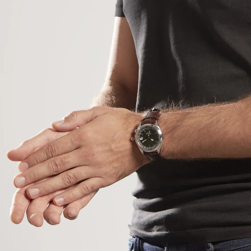 Montre Seiko Prospex Acier Blanc Ronde Automatique 39.5mm Fond Vert Bracelet Cuir Marron Spb121j1