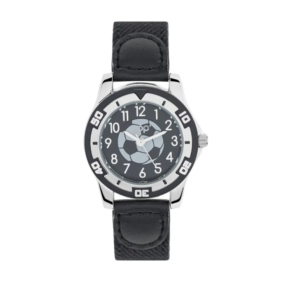 Montre Upp Ballon Alliage Argenté Ronde Quartz 28mm Fond Noir Motif Ballon Et Bracelet Tissu Noir Cl189