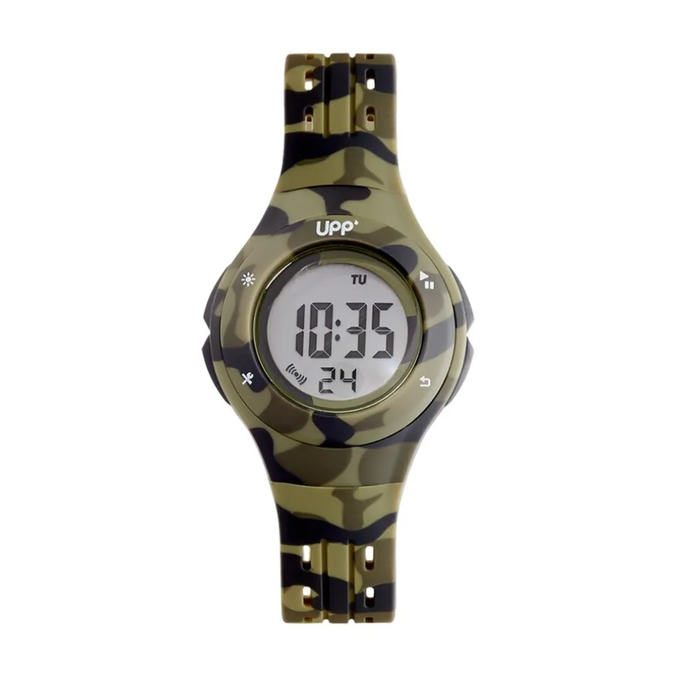 Montre Upp Cosmic Plastique Camouflage Ronde Digital 38mm Lunette Camouflage Fond Gris Bracelet Synthétique Camouflage Up.1455l/03p
