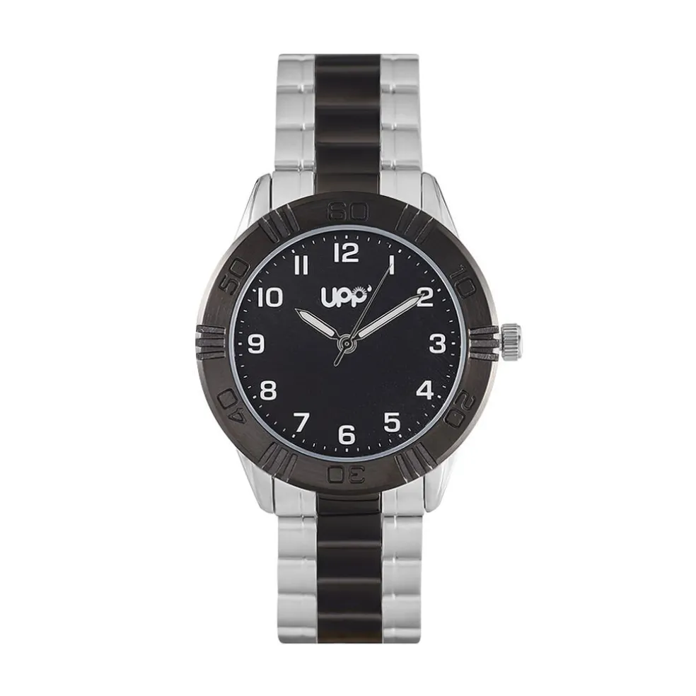 Montre Upp Matthieu Laiton Blanc Ronde Quartz 36.5mm Fond Noir Bracelet Métal Bicolore P100915-d