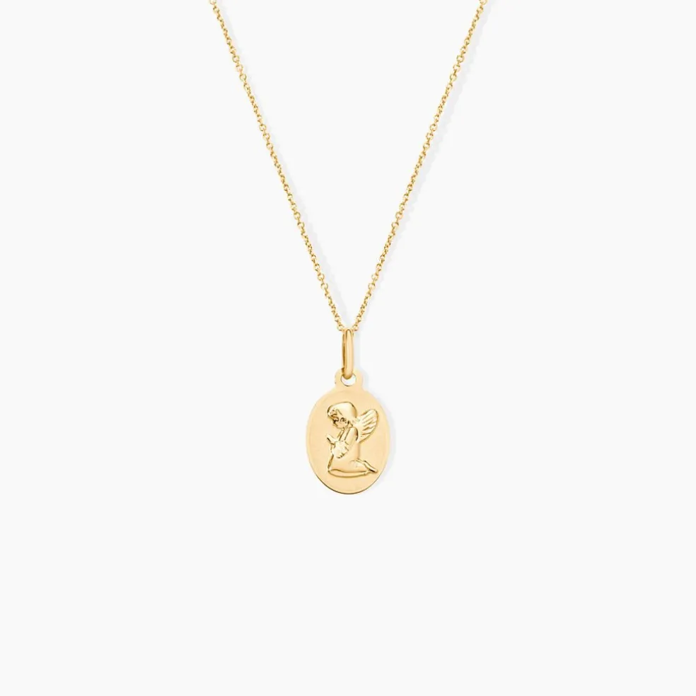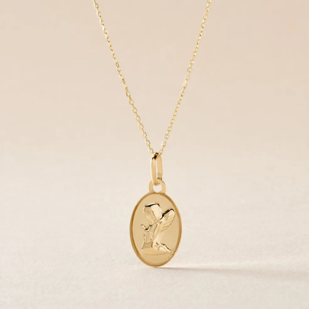 Pendentif Or Jaune 375/1000 Ovale Motif Ange A Genoux