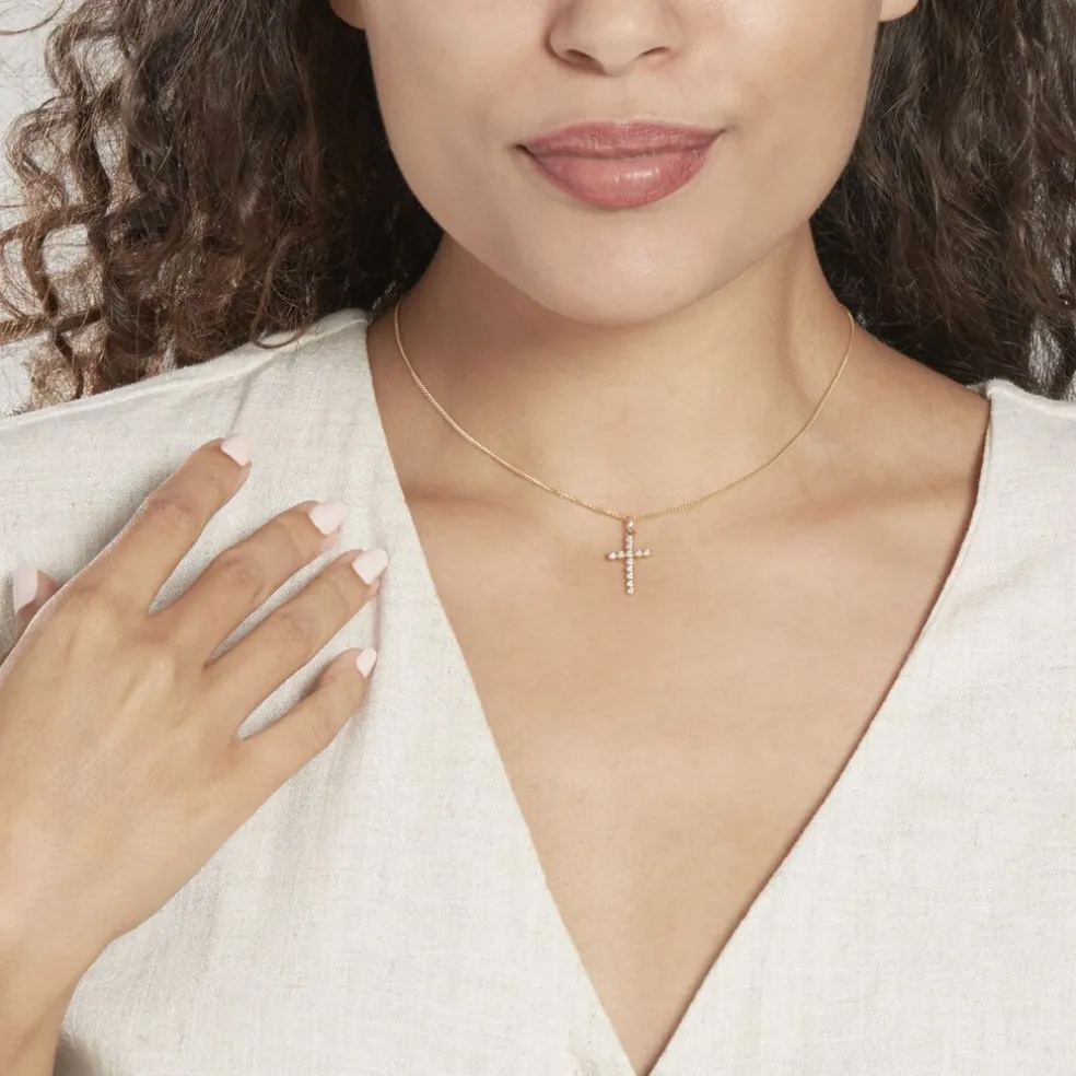 Pendentif Or Jaune 375/1000 Motif Croix Oxydes De Zirconium Pavage