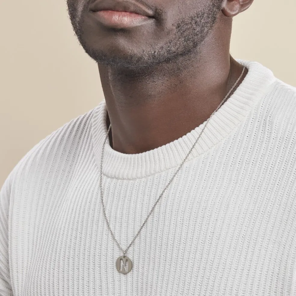 Pendentif Argent Blanc 925/1000 Pastille Lettre N Diametre 18mm