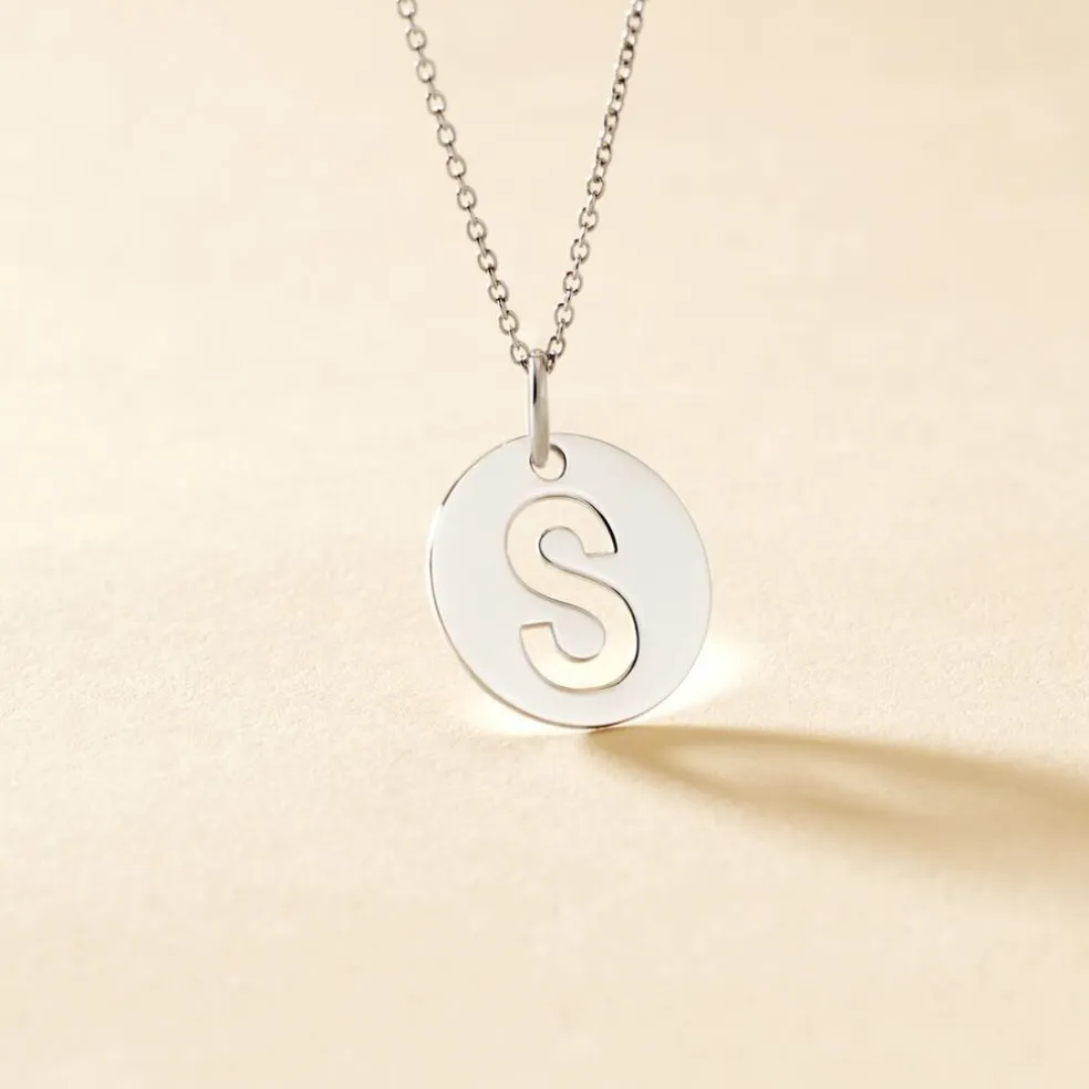 Pendentif Argent Blanc 925/1000 Pastille Lettre S Diametre 18mm