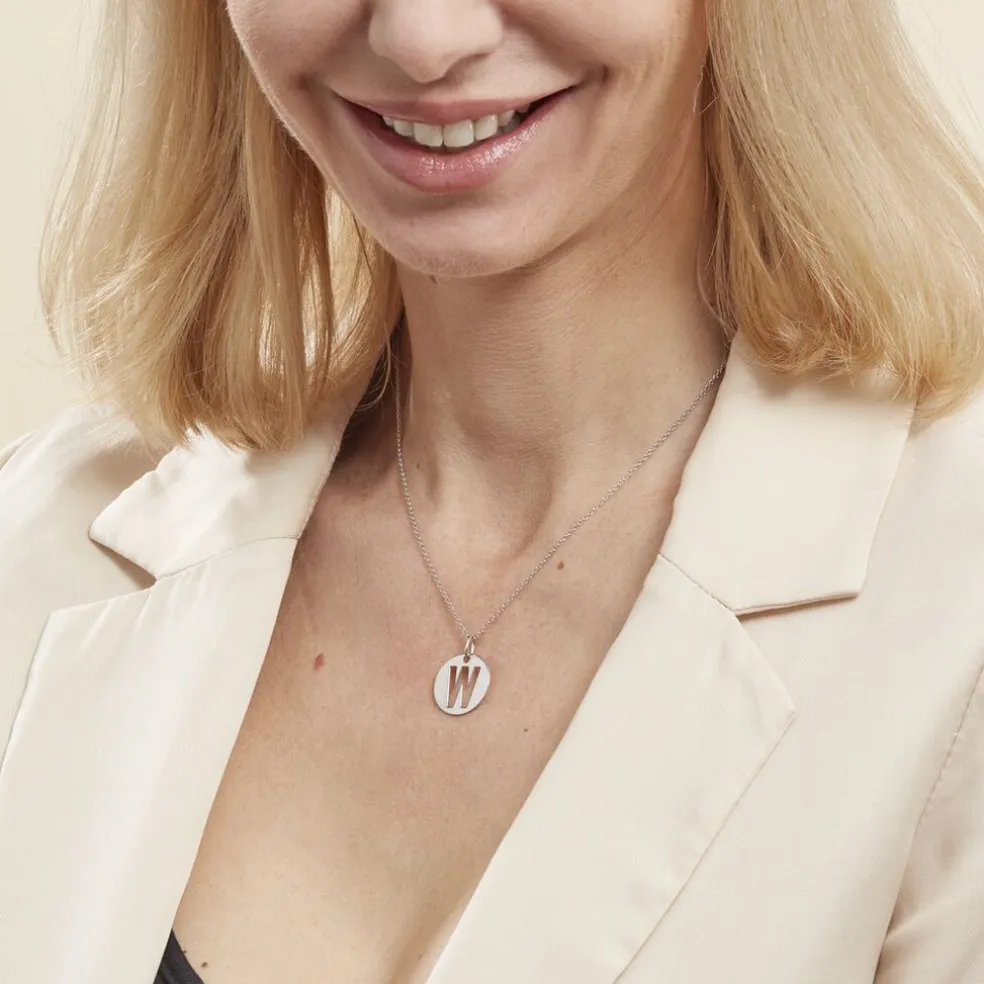 Pendentif Argent Blanc 925/1000 Pastille Lettre W Diametre 18mm
