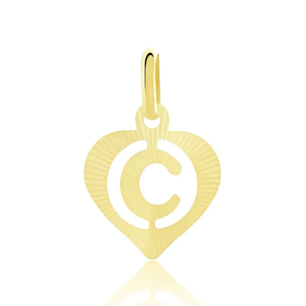 Pendentif C艙ur Or Jaune Lettre C