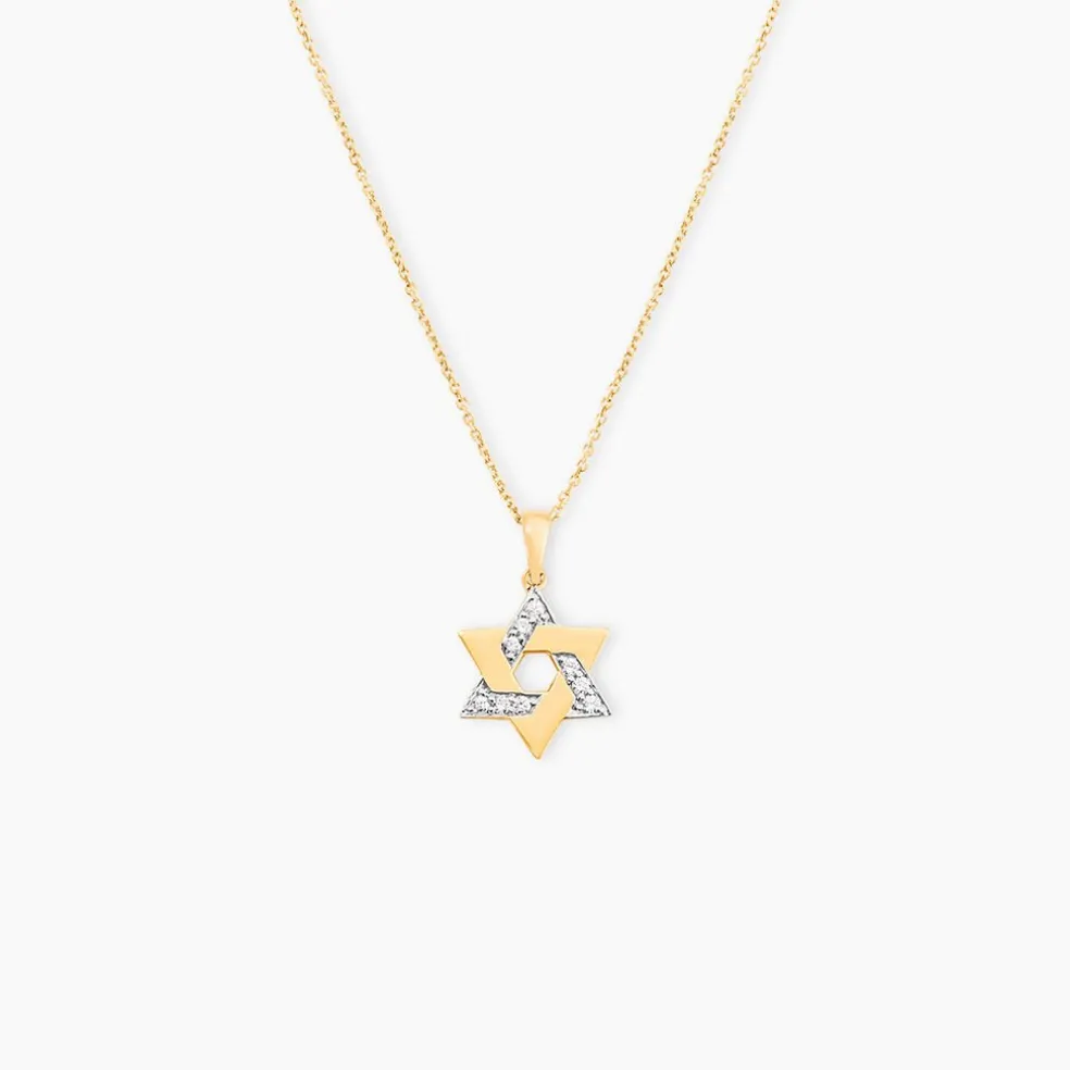Pendentif Or Jaune 750/1000 Etoile De David Oxyde De Zirconium Blanc Serti Pavage