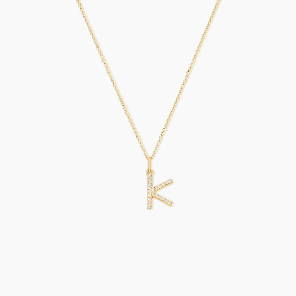 Pendentif Or Jaune 375/1000 Lettre K Oxydes De Zirconium