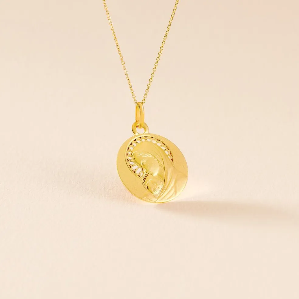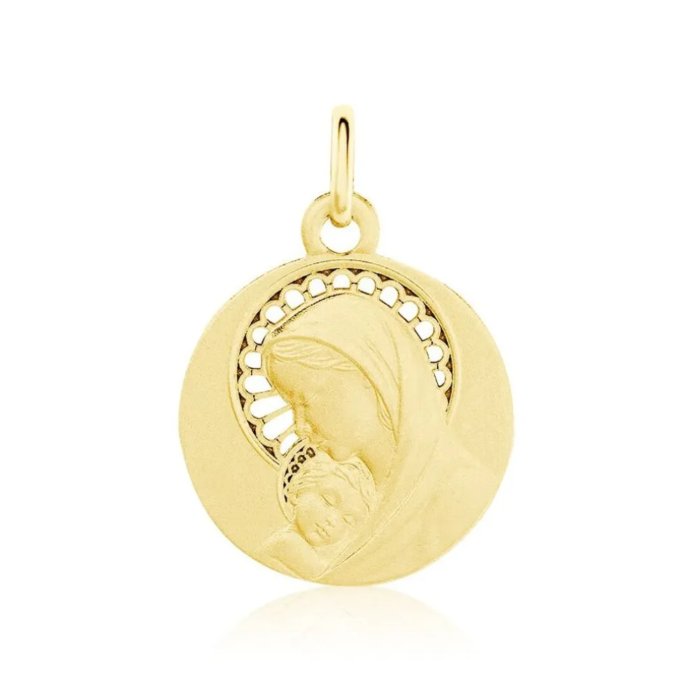 Medaille Or Jaune 750/1000 Vierge A L’enfant Effet Mat Diametre 18mm