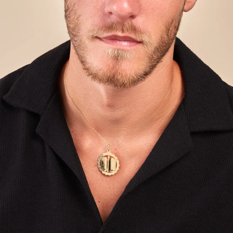 Pendentif Or Jaune 750/1000 Medaille Ronde Livre Coran Ouvert Strié Diamètre 30mm