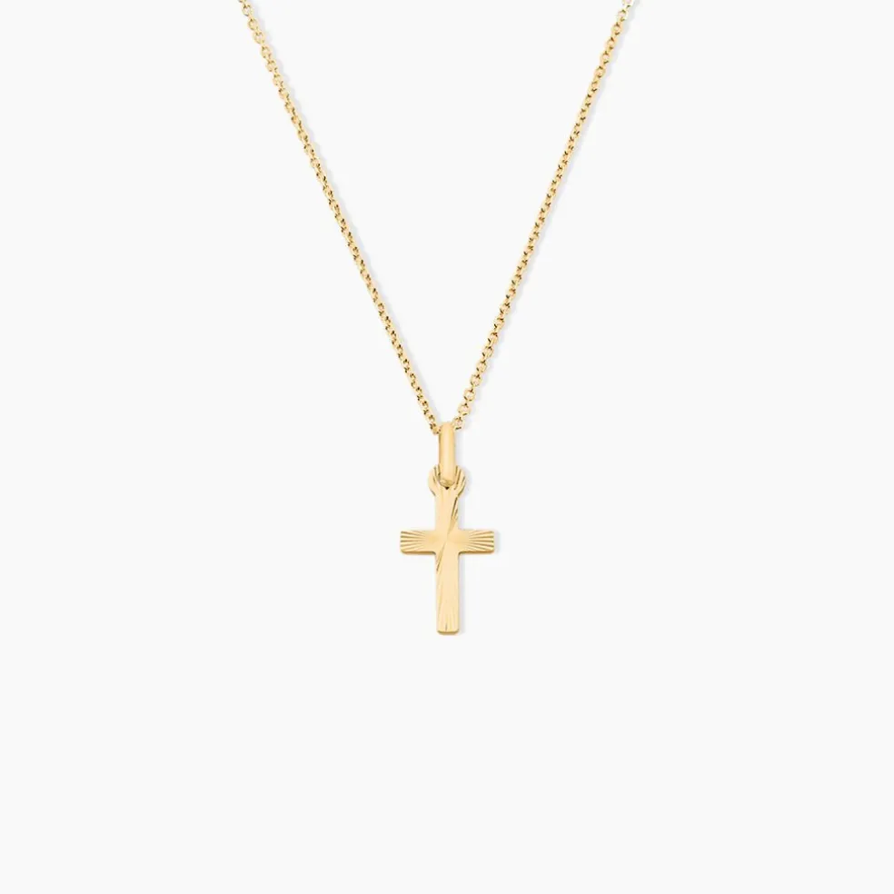 Pendentif Or Jaune 375/1000 Motif Croix Striée