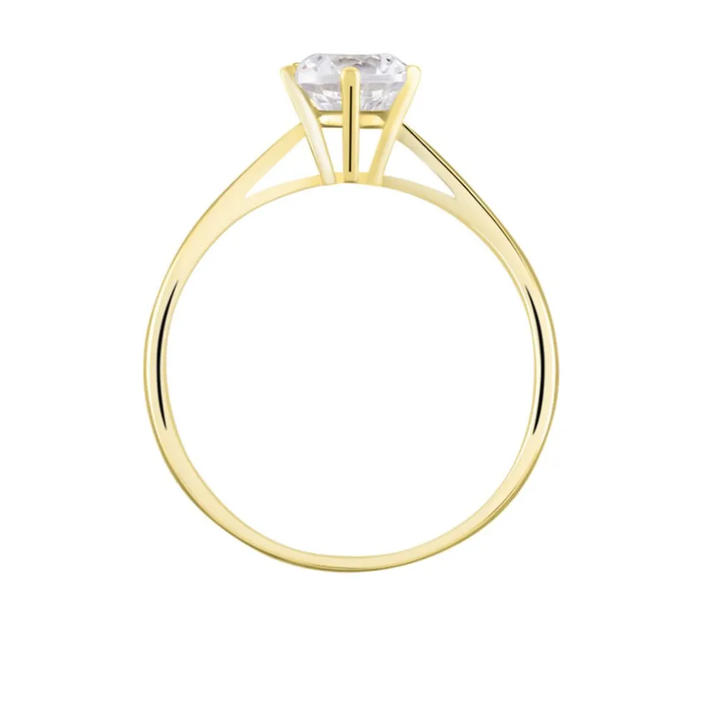 Solitaire Or Jaune 375/1000 6 Griffes Oxyde De Zirconium Blanc Rond